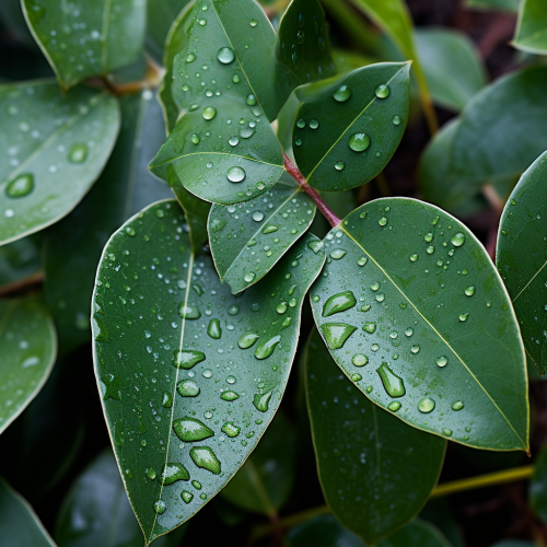 Photo of micro close up of eucalyptus, wet, full frame, highly detailed, overhead view
