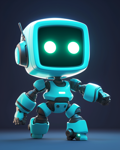 Cute robot, cyan body with white eyes and black background, simple shape design style, cute cartoon character design, soft lighting, solid color background, simple lines, front view, three-dimensional sense of depth. --ar 33:41 --s 50 --niji 6