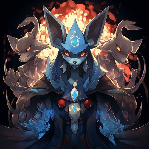 The Pokemon Lucario with a SHaringan with 3 tomoe in his eyes