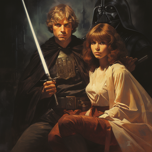 Luke from Star Wars 1970s dark fantasy novel book cover art dungeons and dragons style