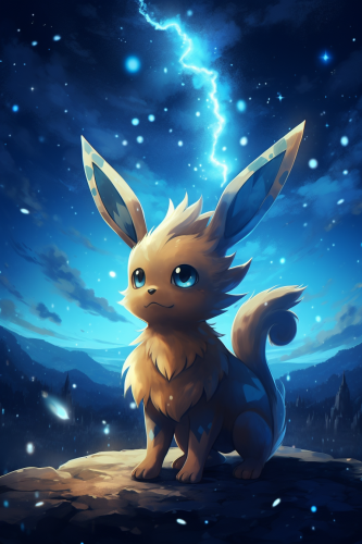 eevee like pokemon, blue, cosmic, galaxy, windy tail and ears, stars --ar 2:3
