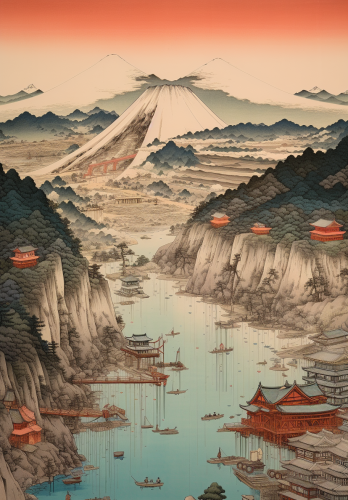 a strip mine by Hiroshige in the style of ukiyo-e woodblock --ar 9:13