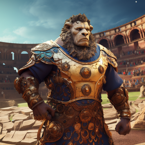 player of football toti fight in colosseum, head of toti is very detailled, toti with a versace outfit