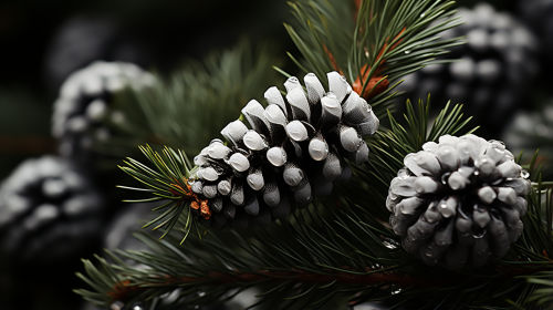 Christmas Tree. Fraser fir. Pop art nouveaux. Black and white photograph. Stylish. High-end. Important. Mysterious. Shot with a Pentax. K-3 III Monochrome. Extreme low angle shot. Shooting straight up. --ar 16:9 --q 0.5 --s 750