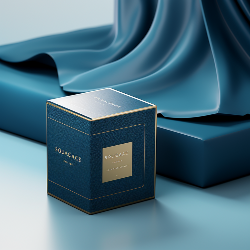 The square packaging design and packaging of textiles are mainly in medical blue color, the auxiliary color is soft curve of gold, high-end atmosphere, full of science and technology, plane, 3d, product display, the best picture quality
