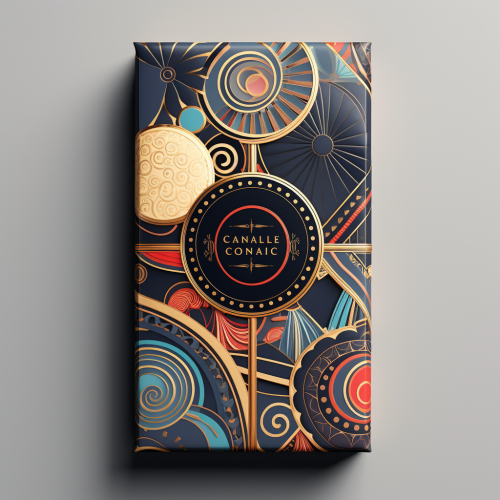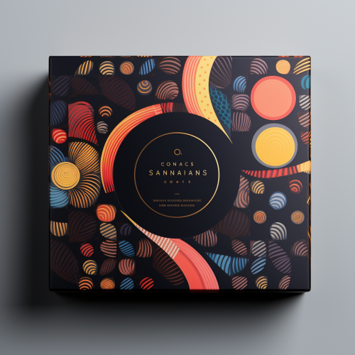 3D template, Package Design for chocolate bonbons, rectangle shape, closed box, luxurious, geometric design, funky and bright, sleeve cover layered paper with cutouts, circles design, technical presentation, circular pattern