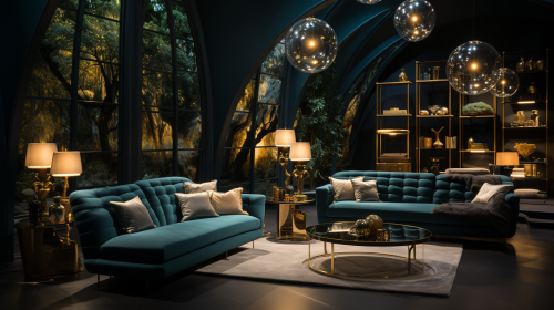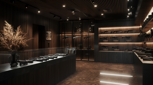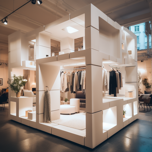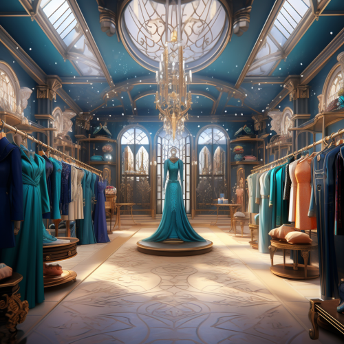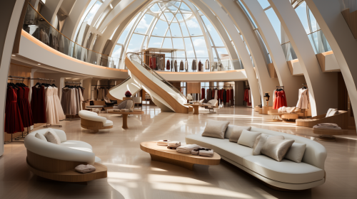 image of a high-end department store with a private luxury showroom in a surrealistic style, consider the following: