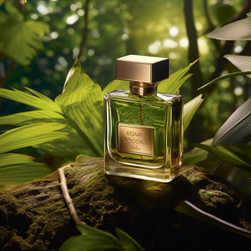 perfume zoom in the front, A dedicated perfume researcher from India embarked on a nationwide journey, seeking the most elegant fragrances to blend with oud, aiming to craft a precious gift. His quest led him to Indonesia, where lush landscapes embraced him, and under the sun's radiant gaze, a symphony unfolded amidst intertwining jasmine vines and a vibrant citrus grove. Entranced by this rare scent symphony, he skillfully combined these three scents, --v 5.2