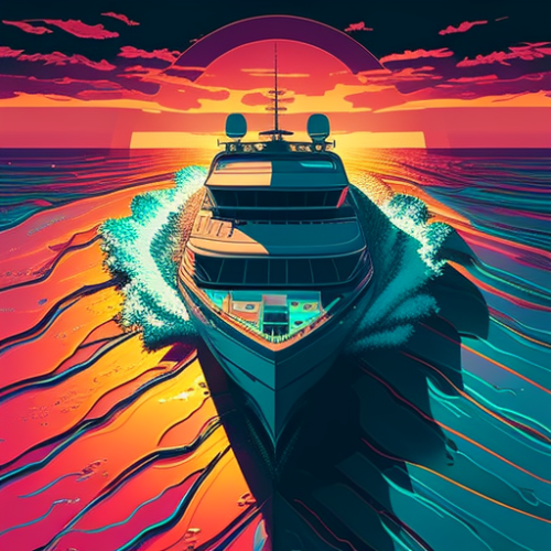 luxury yacht realistic montain see view with Cristal a windows and electric night Colors