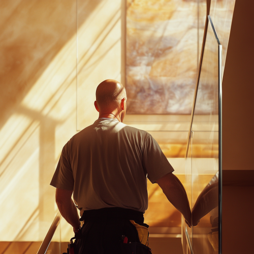 Modern luxury apartment exterior, featuring a combination of glass and stone elements, large balconies, clean architectural lines, surrounded by greenery, conveying both elegance and a solid, heavy presence, located in a prestigious neighborhood. Photorealistic, highly detailed, 8K resolution --ar 3:2 --v 6.1 --style raw