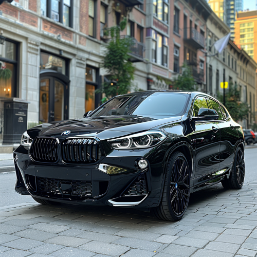 A new black Mercedes CLA with a huge red bow stands in the parking lot of a store with a blue "LIDL" sign, ultra-realistic, real photo --v 6.0 --s 750
