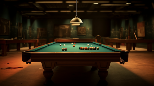 a few billiard balls are spread on a billiard table; cinematic, photorealistic; from a player perspective --ar 16:9