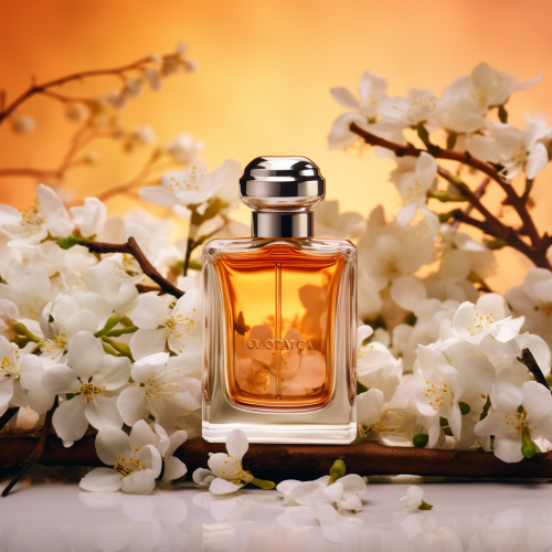 a proffesional, dior style, background image for a perfume with apricote, santal wood, orange's flower