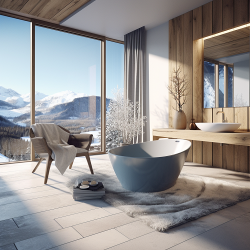 Ultra Luxury modern dining interior designed by foster + partners with a painting on the main wallFull length photo. Morning Sun Light, Bright Colours. Photographed by AnRong Xu, Canon EOS R5 with an 80mm f/ 2. 4 lens. The color have been expertly graded, giving the image a rich and vibrant look. Captured in stunning 8k high definition, every detail is crystal clear --ar 9:16 --v 5.2