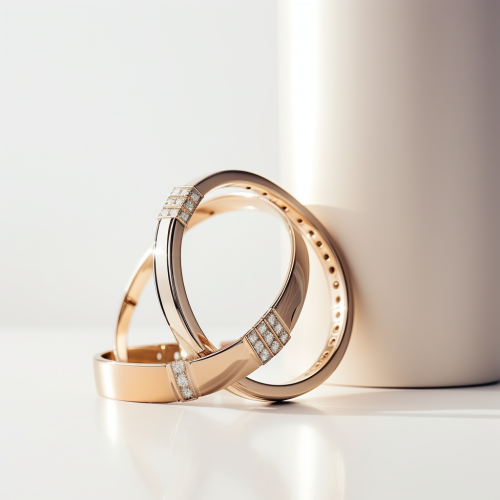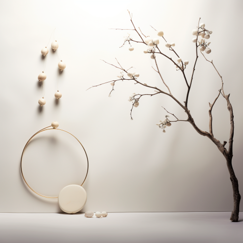 The elegant minimalism focus on the simplicity and elegance. The image focus on jewelry in a minimalist style, with neutral background and soft light to enhance the beauty and details of the jewelry.