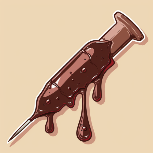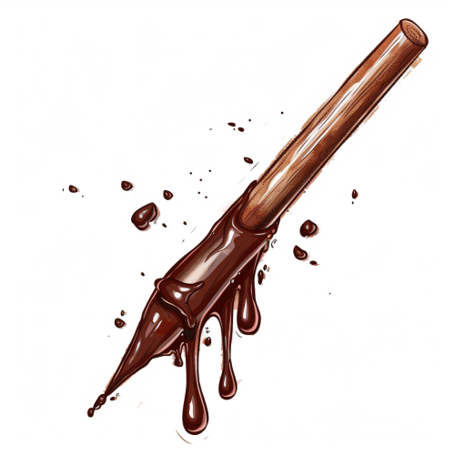 Draw a chocolate needle pointing downward, dripping a few drops of chocolate, and there is a space for writing on the body of the needle, sticker style.