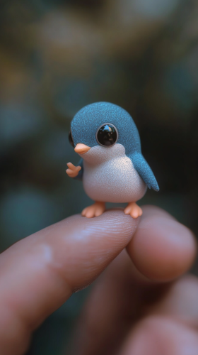Photorealistic macro shot of a miniature newborn 【Rabbit】 perched on a human's thumb. Extreme close-up emphasizing the infant 【Rabbit】's delicate features: wrinkled gray skin, oversized expressive eyes, and wisps of soft fur. The tiny creature clings to the thumb with its minuscule feet. Sharp focus on the 【Rabbit】 with a shallow depth of field blurring the human hand, accentuating the dramatic size difference. Studio lighting for crisp detail and textures.