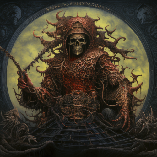 Humanoid Creature Covered in eyes and dripping slime, ink pen, no color, black and white, heavy shadows, horror art, death metal art, doom metal art, heavy metal art, evil art, album cover, black metal art, comic book art, graphic novel art, digital art, vector art, --v 5.0 --s 50
