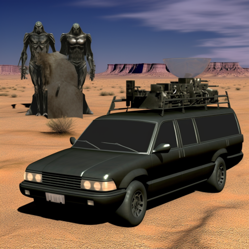 a black minivan out of Mad Max, armored minivan, soccer mom mini van with mounted guns, pixelated glitchart of vehicle, ps1 playstation psx gamecube game screencapture, bryce 3d --v 5.2 --style ddCHhSumaNyOrL1Q