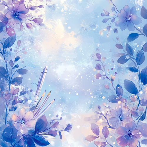 Create a dreamy and captivating advertising background for school pencil cases. The background should resemble a high-end magazine advertisement with a luxurious and aspirational feel, rendered in a manga cartoon style. Use a soft, elegant color palette with shades of blue and violet, inspired by Stitch, and include subtle elements such as abstract patterns, delicate textures, and dreamy lighting effects, all presented with manga-style artistry. Add elements like pencils or other school supplies to evoke excitement about going to school. Ensure the background has a clear, unobtrusive central area where images of the pencil cases can be added later. The overall design should combine sophistication and imagination, making it ideal for a magazine-quality ad with a playful manga twist. Specific details to include: Style: High-end magazine advertisement with a manga cartoon twist Design elements: Abstract patterns, delicate textures, dreamy lighting, pencils or school supplies Color palette: Shades of blue and violet (inspired by Stitch) Ambiance: Sophisticated, imaginative, luxurious with manga influences Clear central area: To add images of the pencil cases