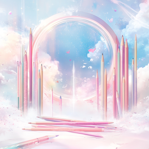 Create a dreamy and captivating advertising background for school pencil cases. The background should resemble a high-end magazine advertisement with a luxurious and aspirational feel. Use a soft, elegant color palette and include subtle elements such as abstract patterns, delicate textures, and dreamy lighting effects. Ensure the background has a clear, unobtrusive central area where images of the pencil cases can be added later. The overall design should evoke a sense of sophistication and imagination, making it ideal for a magazine-quality ad. Specific details to include: Style: High-end magazine advertisement, dreamy and aspirational Design elements: Abstract patterns, delicate textures, dreamy lighting Color palette: Soft, elegant colors Ambiance: Sophisticated, imaginative, luxurious Clear central area: To add images of the pencil cases