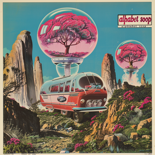 cover story with the words "alphabet soop 2023" on the label. 1970’s magazine ad, just text, isolated text