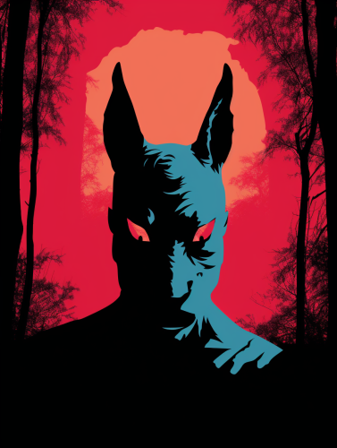 métamorphosis a silhouet with a mask of donkey in a forest graphisme minimaliste pop color --ar 3:4