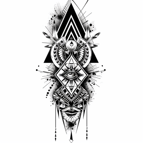 vector art of a detailed tattoo design inspired by power and masculinity, geometric, black ink on white background --v 6.0 --s 50