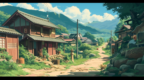 modest architectural photorealistic image of a japanese Minka in a semi urban village, autumn day in japan, Sony Alpha 7R V, 35mm lens, f/16, soft natural light on a cool japanese day, deep depth of field, subdued colors, ISO 250, 1/60 sec --style raw --stylize 30 --v 6.1