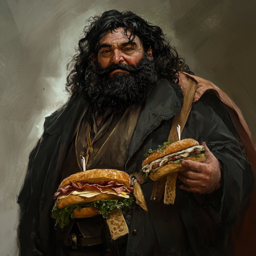 The main character from Columbo as a dwarven cleric investigator. The dwarf has a long black beard, curly messy hair, and has sub sandwiches hanging from his belt.