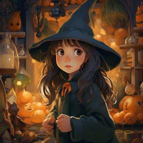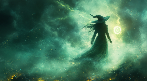 a halloween style witch that make a spell for crafting and increadible successful company building. With Odoo logo flowing into the magic flows.This is a concept art painting in the style of Greg Rutkowski. --ar 128:71 --v 6.1 --s 750 --style raw