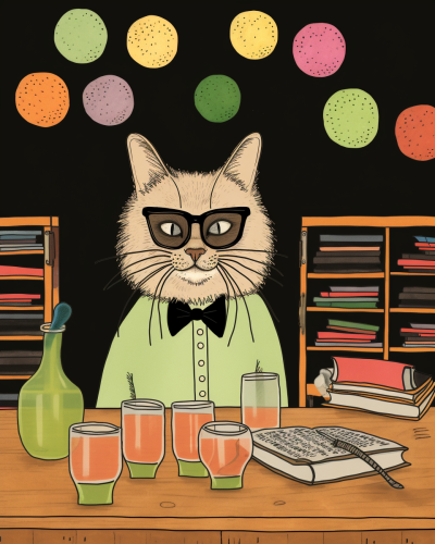 A teacher with a pencil in one hand and a pencil in the other hand, with an angry look in a class of young students, yells at a student standing in front of her. All the other students are sitting at their desks, their school bags are next to them, on the desks are books and pencils, background-windows of a classroom from which you can see trees, next to the teacher are Cabinet with bags, comic
