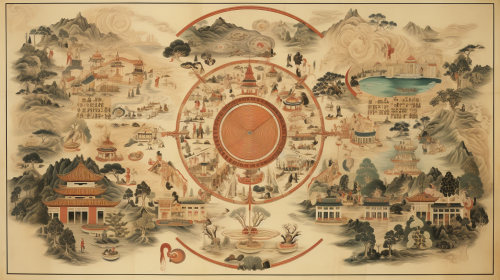 Mineral Show floor map in Edo period, bird eye view, infographic, marginalia, --ar 16:9 --v 5.2