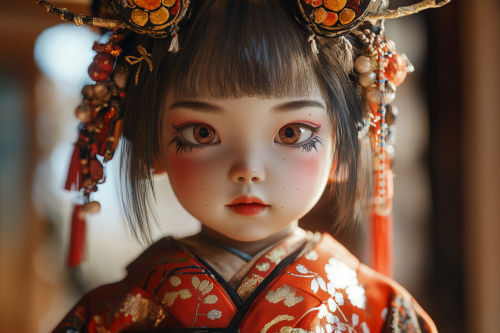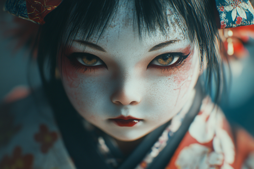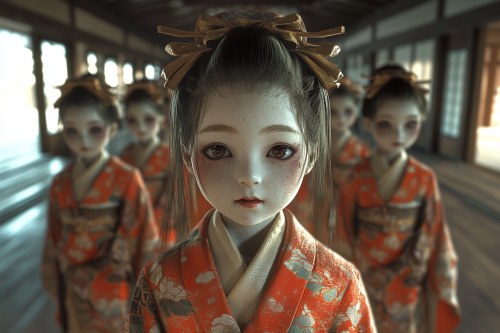 Japanese Beautiful Child Specters,. Taken from a distance,. Edo period,. Grotesque faces,Unreal Engine, Super-Resolution, Ray Tracing, high resolution photography, 4k, studio photo, elegan --ar 3:2