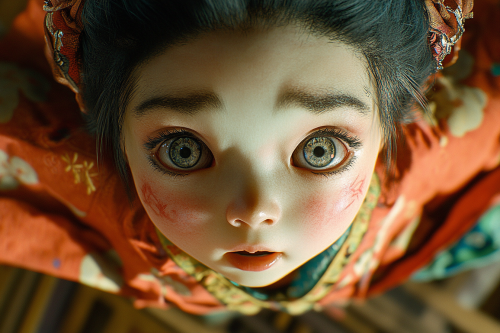 Japanese Beautiful Child Yokai, Oblique top view angle,. Edo period,. Grotesque faces,Oblique top view angle,Unreal Engine, Super-Resolution, Ray Tracing, high resolution photography, 4k, studio photo, elegan --ar 3:2