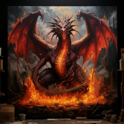 fiery majestic dragon, magic, realistic, dark, fantasy, style of michael whalen