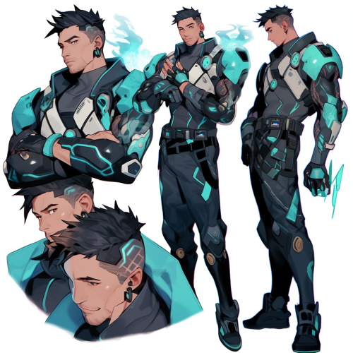 adopt, adoptable character, male human, adoptable character sheet, multiple poses of same character, male human, policeman cyberpunk, slightly tanned skin, soft look, concept art, dynamic posing, detailed concept art, cinematic lightning, --niji 5