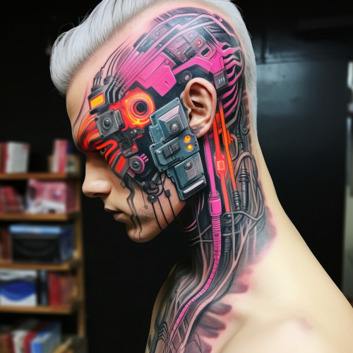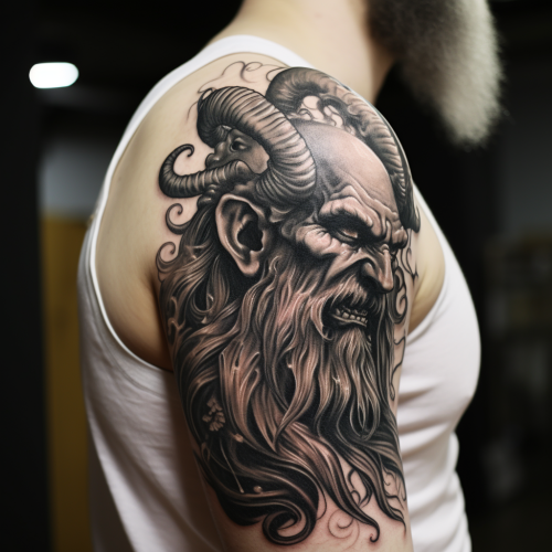 draw a male tattoo sketch, which will depict: - a plaster antique head of Zeus, a painting by a famous artist (impressionist or surrealist), a symbol of strength, success and wealth. graphic with colored elements, Minimalistic, realistic graphics. --ar 9:16