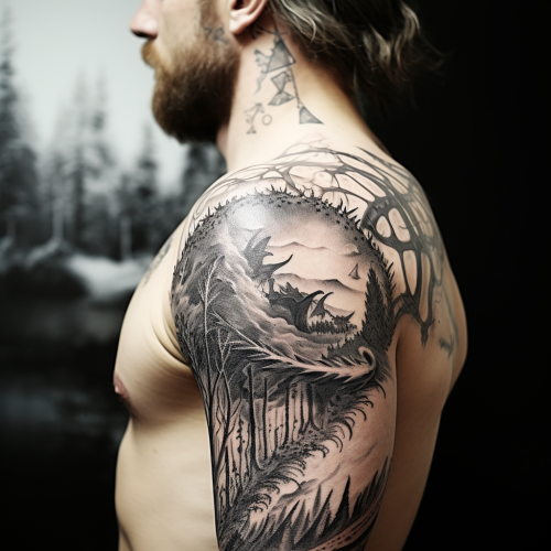 Stylish shoulder tattoo in black ink