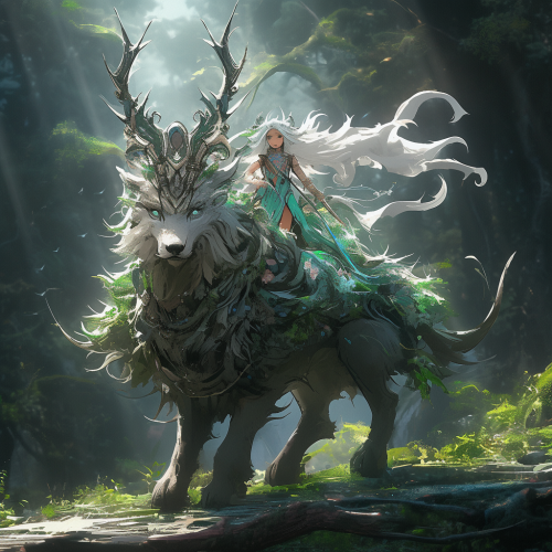 Grimdark mystic amazing wise male elf druid riding on a majestic pixiu, close-up view, anime style, high fantasy, digital art, masterpiece painting, ultra detailed, ultra high definition, 8K resolution, 3D shading, superior quality, cover illustration, complex design, luminous highlights, rich vibrant colours, hyperrealistic, meticulously hyper detailed, high contrast, artstation --niji 5