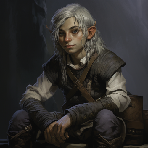 a male halfling swashbuckler with the features of a drow elf