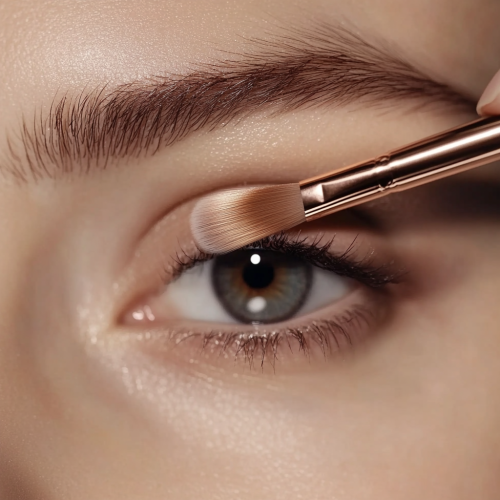 draw a trace of the serum brush, imitating the movement of applying it to the eyelid. Beauty video, which is a symbol of being painted in a patterned, slightly artistic way, lines drawn intelligently, shaping the eyelids, like a make-up artist. A soft line