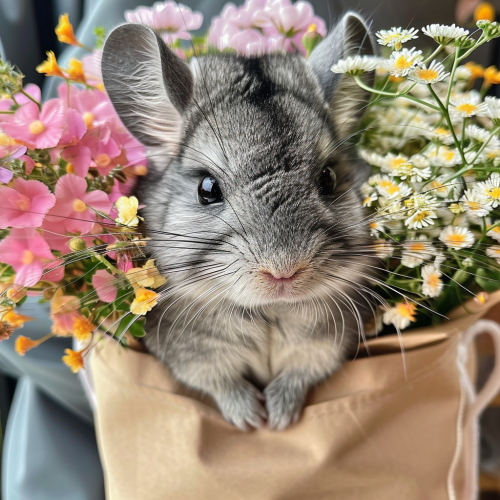 an adorable chinchilla working as a florist --v 6.0