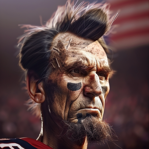 a male human with the features of abraham lincolk and bill belichick