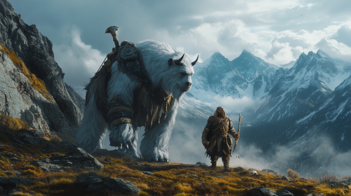 male dwarf ranger, mountains, dark fantasy, outdoors, epic, with a bear animal companion, action shot, full body image, 4k, vivid, 4k ultra detailed, 4k cinematic, 4k hyper detailed, 4k ultra realistic, 4k hyper realistic, 4k photorealistic, --ar 16:9 --v 6.1