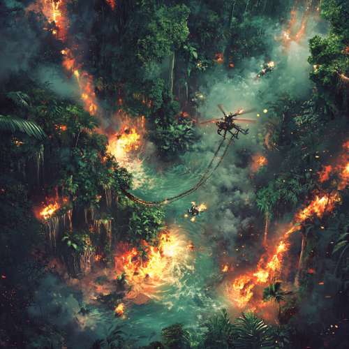 Focus closely on a dramatic scene where 5 to 6 humanoid droids, each of the same stature as the female cyborg warrior, are captured in the midst of simultaneous explosions. This detailed snapshot situates the warrior in the foreground, providing a clear contrast between her victorious stance and the chaos unfolding behind her. Each droid is depicted in a distinct pose of destruction, with arms and legs flailing, as they are engulfed in bright, fiery blasts. The explosions should be rendered with intense detail, showcasing a range of colors from bright yellows and oranges to deep reds, illustrating the heat and energy of the blasts. Debris from the droids, including metal parts and electronic components, is shown flying through the air, creating a dynamic sense of motion and impact. The background, while secondary to the action, subtly hints at the urban battlefield setting, with ruined structures and smoky skies adding to the atmosphere of devastation. The female cyborg warrior, though part of the scene, remains calm and composed, her figure outlined against the backdrop of destruction. Her expression is one of determination and resolve, emphasizing her role as the catalyst of the droids' demise. The scene is imbued with the essence of 1990s anime, utilizing exaggerated motion lines and dramatic shading to highlight the action and energy of the moment. This composition is meticulously crafted to draw the viewer's attention to the droids' explosive end, balancing the intensity of the moment with the warrior's stoic presence. The detailed depiction of the droids' destruction, matched in scale and detail to the warrior, serves to underscore the magnitude of her power and the decisive outcome of the battle.