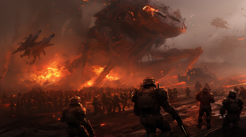 concept sketch of a Halo Spartan II fighting grunts and elites, big battle field, 4k --ar 16:9
