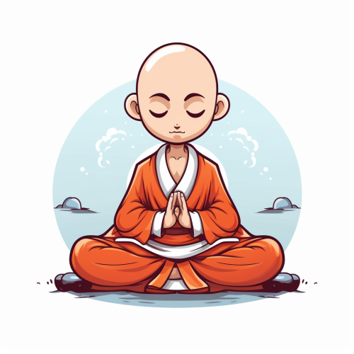 Kawaii Zen monk warrior sitting in meditation, cartoon, full body, clean, simple, white background, professional tshirt design vector