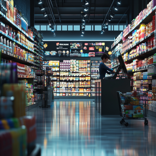 genera l’immagine foto realistica di un vecchio uomo, con capelli e barba bianchi che sta lavorando dietro il banco del pesce in un mercato cittadino. Sul suo bancone ci sono vari tipi di pesci. In mano tiene fermamente l’imponente tridente di Poseidone.