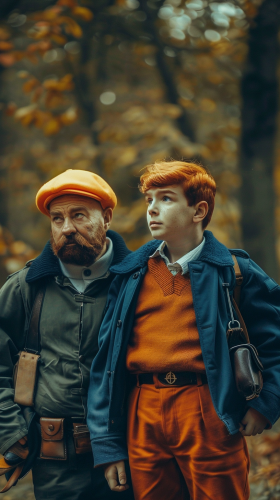 a boy and a man who look like the characters Tintin and Captain Haddock. Professional photography --ar 9:16 --v 6.0